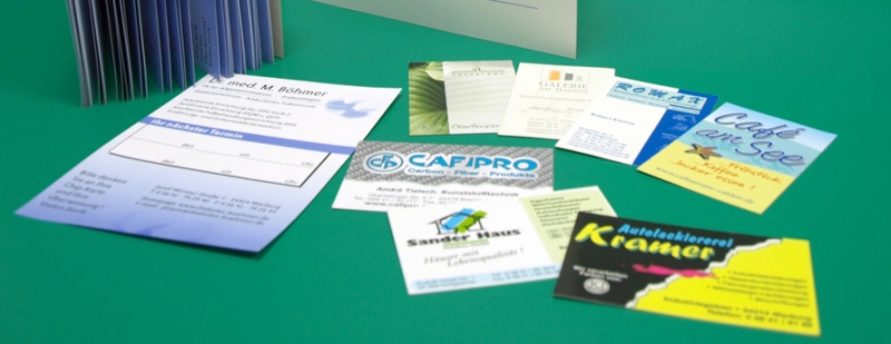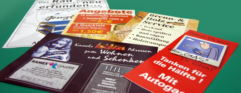 Auf Wunsch produzieren wir die klassischen Drucksachen wie Geschäftspapiere, Flyer, Plakate oder Prospekte nach entsprechendem Entwurf.